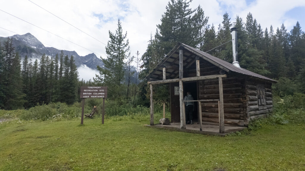 Die Fahrt runter genossen wir und zu unserem Glück klarte es auf. An einer kleinen Hütte am Wegesrand, die man benutzen durfte machten wir halt. Alles wichtige gab es dort. Etagenbetten, Stuhl, Kamin und Bärenspray, Feuerzeug uvm. Natürlich nicht besonders sauber, aber trocken. Wir machten eine Kaffeepause in der Sonne und dann zogen auch schon wieder die nächsten Regenwolken auf. Waren unsere Regenjacken doch grad erst trocken geworden, aber ja.