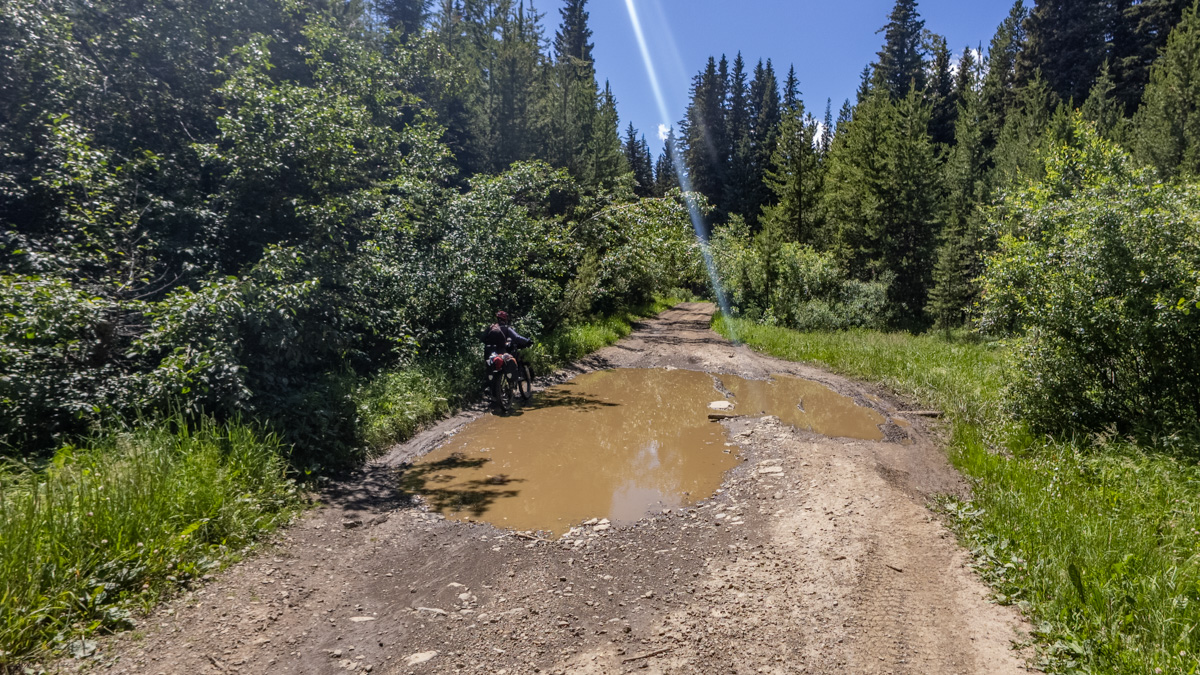 Der Weg war großartig, anstrengend, da bergauf und durch den Regen etwas schwierig zu fahren, aber er machte Spaß. Sorgen machte uns das angesagte Gewitter. Und tatsächlich oben auf dem Elk Pass krachte es mehrere Male ganz ordentlich. Da fuhren wir gleich noch ein bisschen schneller….